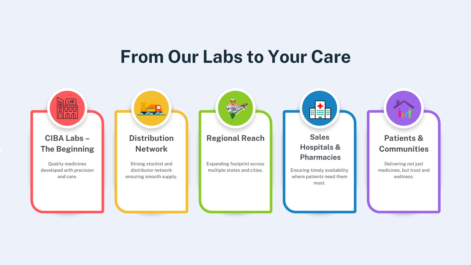 CIBA Labs is dedicated to developing and delivering reliable pharmaceutical products that prioritize quality, safety and effectiveness. Our portfolio includes a growing range of formulations across antibiotics, liver care, general wellness, pain management and therapeutic support categories. Every product manufactured for CIBA Labs follows stringent quality protocols and industry standards. We collaborate with certified facilities that maintain WHO-GMP and regulatory compliance, ensuring consistent quality from raw material selection to final packaging. With a strong focus on research-backed formulations, ethical business practices and customer-first service, CIBA Labs aims to make trusted healthcare accessible to medical professionals, distributors and patients across India.